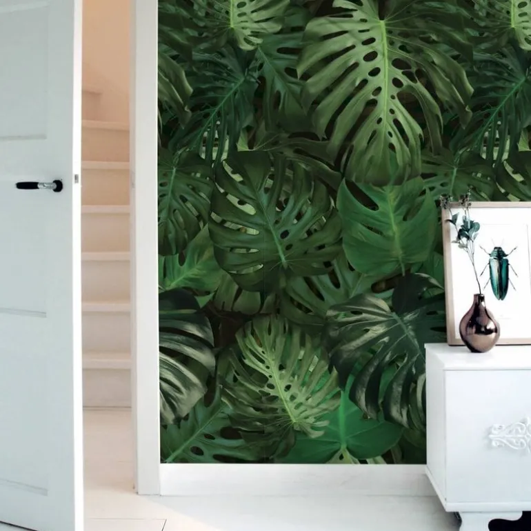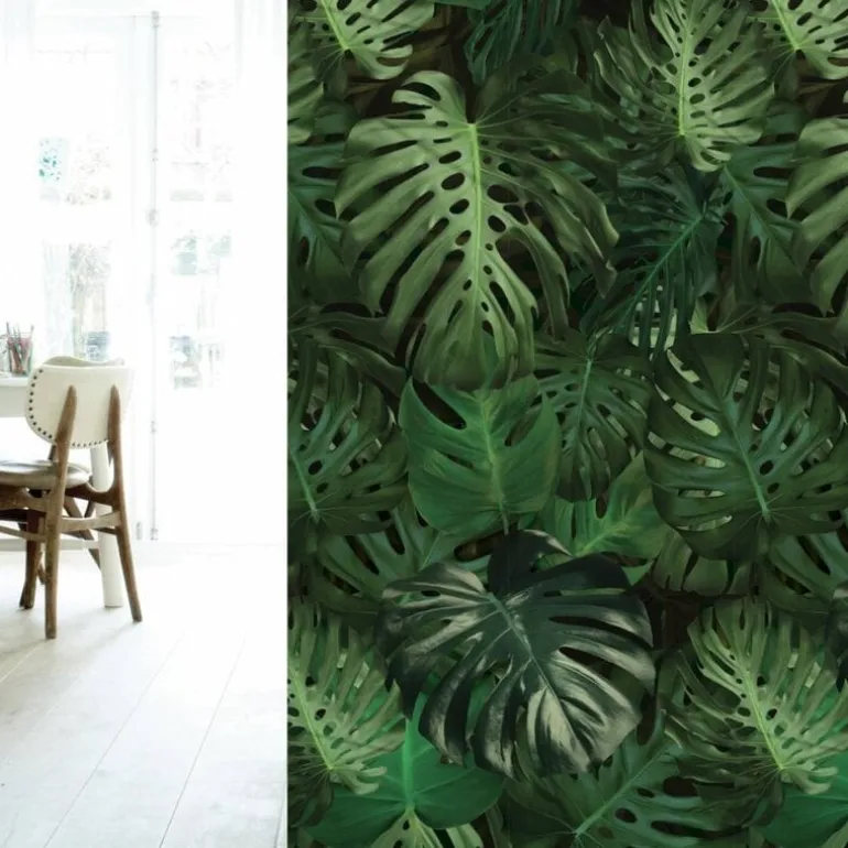 Een rol van het tropische Monstera behang van KEK Amsterdam bestaat uit 2 verschillende banen met bladeren. De bladeren sluiten perfect op elkaar aan. Geef je interieur in no-time een tropische sfeer met ons behang met monsterabladeren.