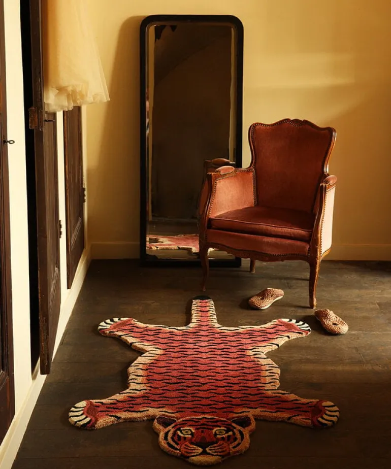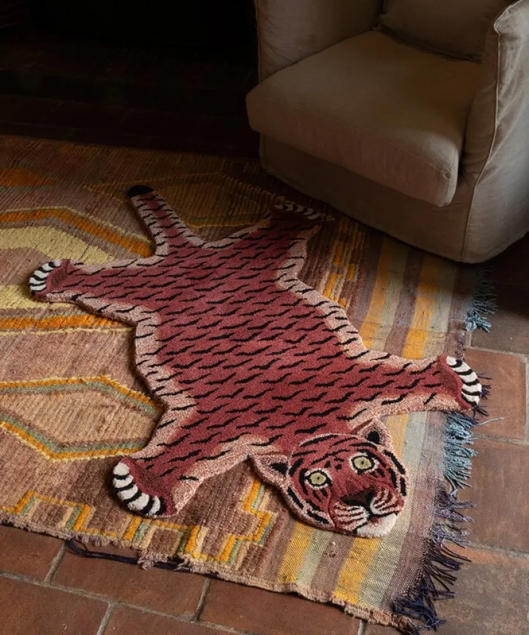 De Tapis Amis vloerkleden van Doing Goods zijn razend populair en wij begrijpen waarom! Het Doing Goods Tula Wise tiger vloerkleed L is prachtig en wordt met veel liefde handgemaakt in India van wol. Afmeting 144x93x2cm