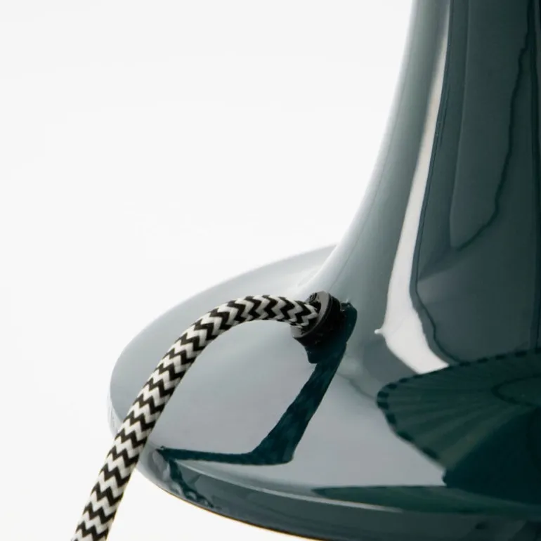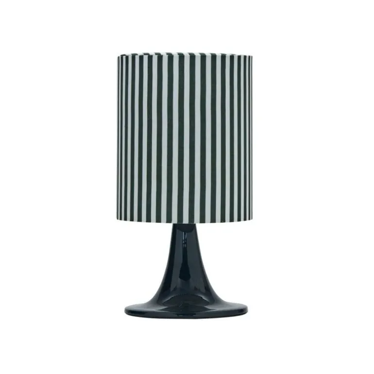 De House Doctor Tulip tafellamp heeft een aluminium voet met een groene finish en een linnen lampenkap. De lampenkap heeft een streep patroon, wat extra sfeer geeft. Beschikbaar in verschillende kleuren. Afmeting Ø20x38cm