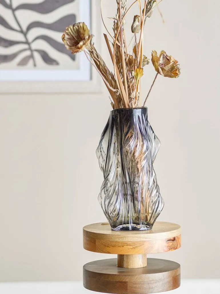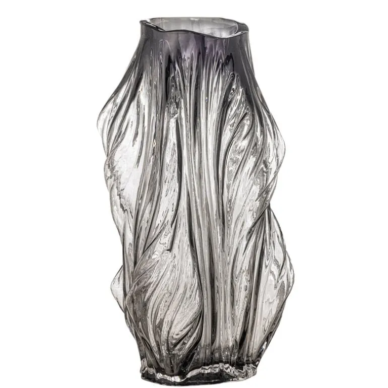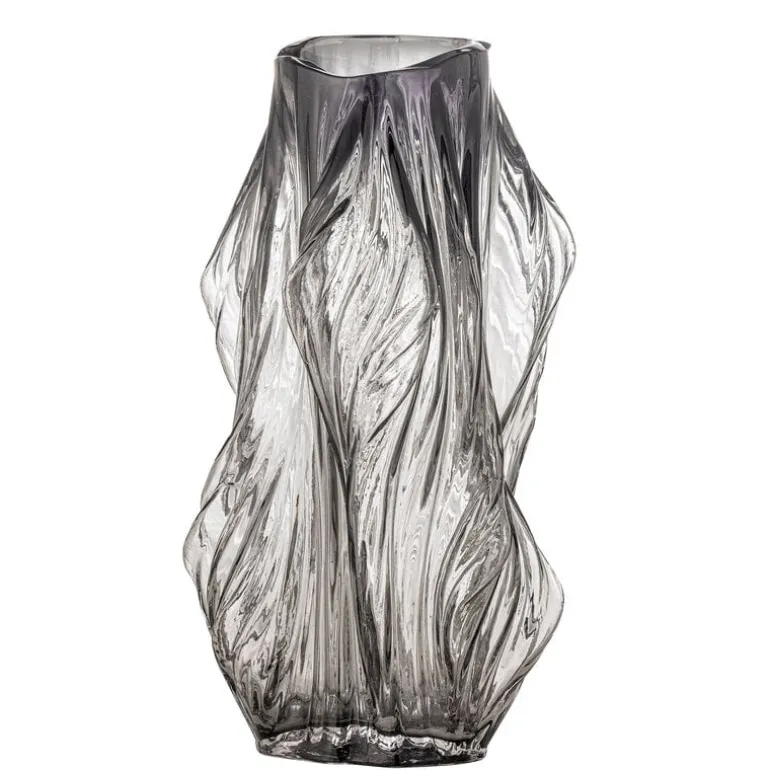 De Bloomingville Tulla vaas is gemaakt van glas en heeft een elegante, golvende vorm. De unieke textuur van de vaas vangt het licht prachtig op en voegt een verfijnde touch toe aan elke kamer. Afmeting Ø17,5x32cm