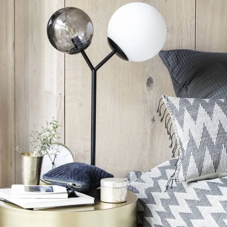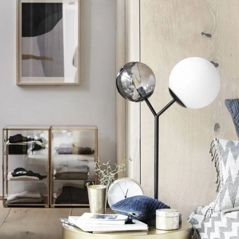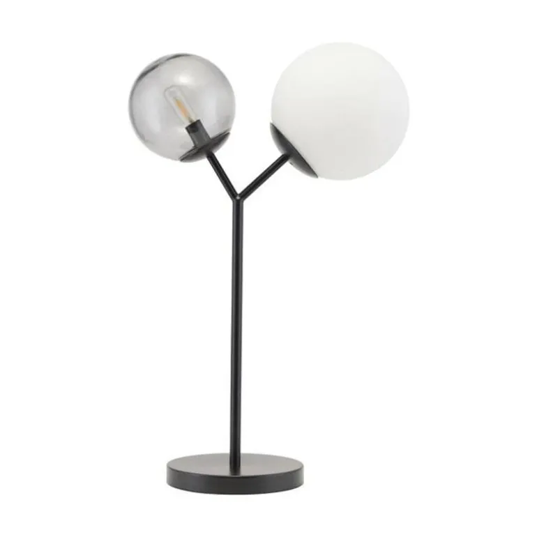 Prachtige House Doctor Twice tafellamp. Deze zwarte Twice tafellamp is gemaakt van metaal en heeft een wit en grijze lampenkap van glas. De hoogte van de lamp is 42cm. Wordt geleverd met een 2,5m lang snoer en is geschikt voor een E14 fitting met 40W max.