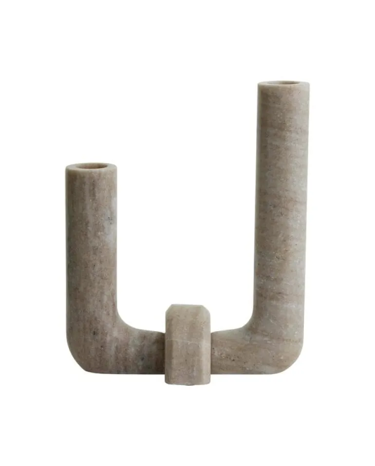 Mooie kandelaar van het Deense interieurmerk Nordal. De Nordal Vaca kandelaar bruin is gemaakt van marmer. Er kunnen twee kaarsen in de kandelaar worden geplaatst. De kandelaar heeft een afmeting van 20,5cm hoog en 17cm breed.