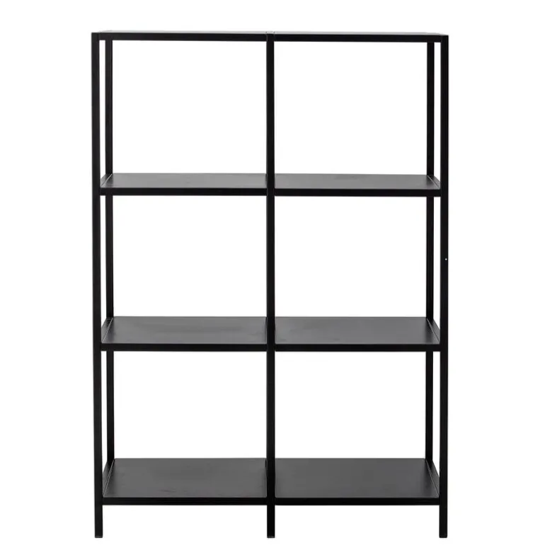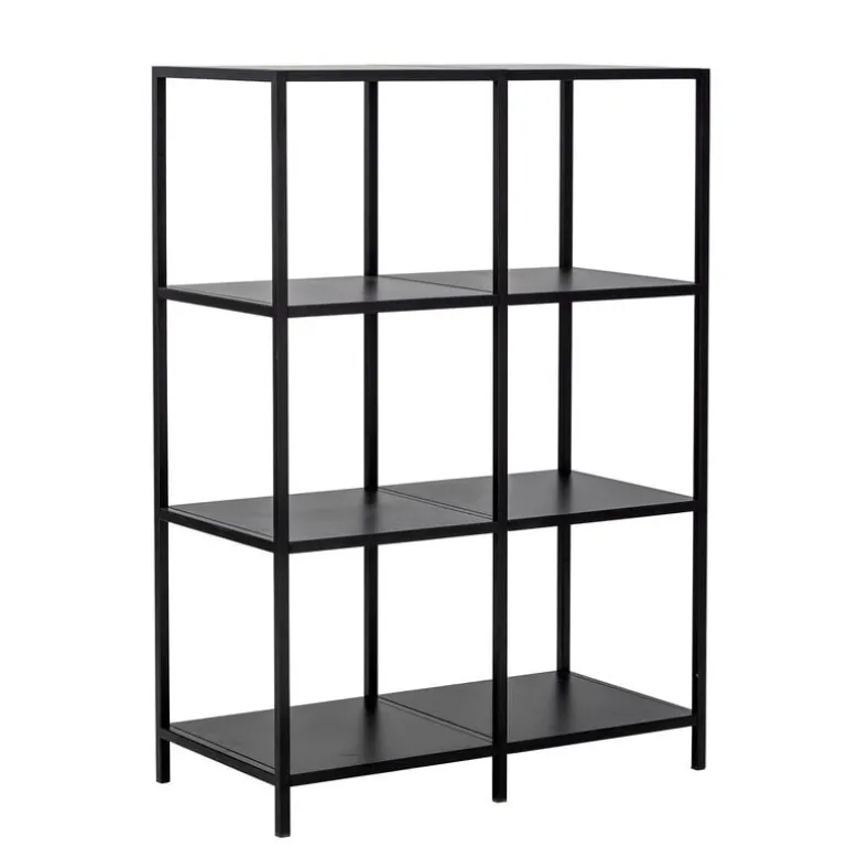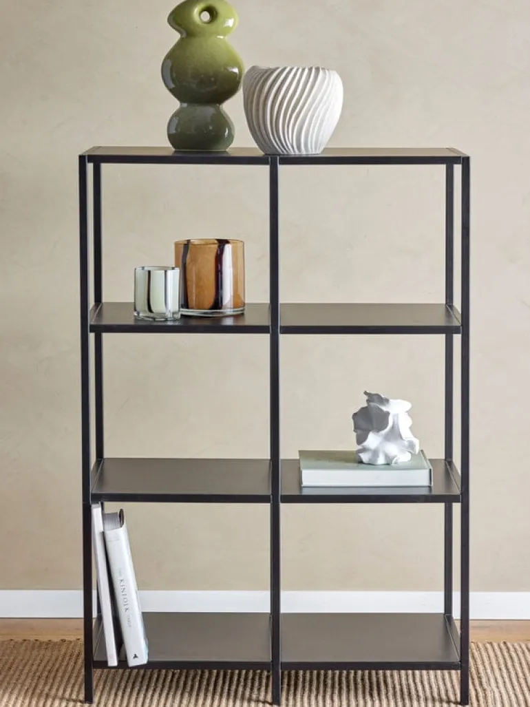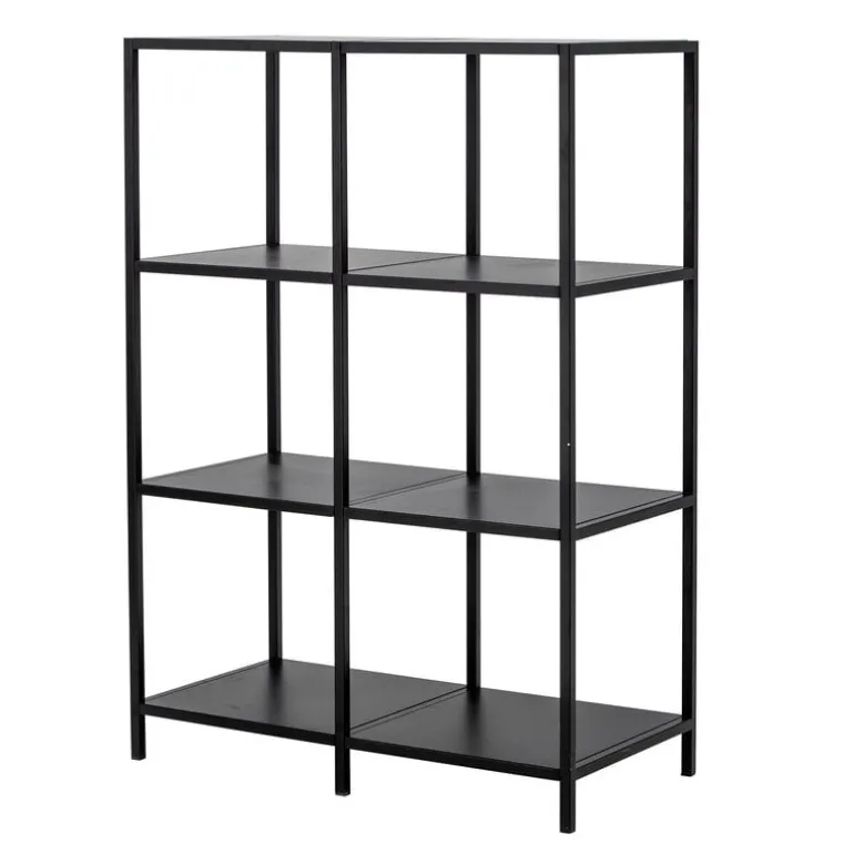 De Bloomingville Valde boekenkast heeft een klassiek en tijdloos ontwerp, vervaardigd in zwart metaal. Hij kan tegen een muur worden geplaatst of vrij in een ruimte staan als roomdivider. Afmeting 80x40x114cm