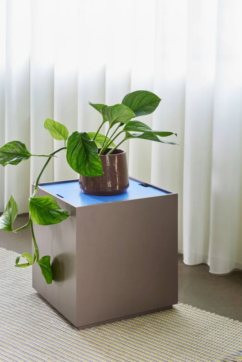 Multifunctioneel item van Hubsch. De Hunsch Vault is een bijzettafel maar ook een opberg box. De box heeft een deksel. Beschikbaar in verschillende kleuren. Afmeting 40x40x45cm