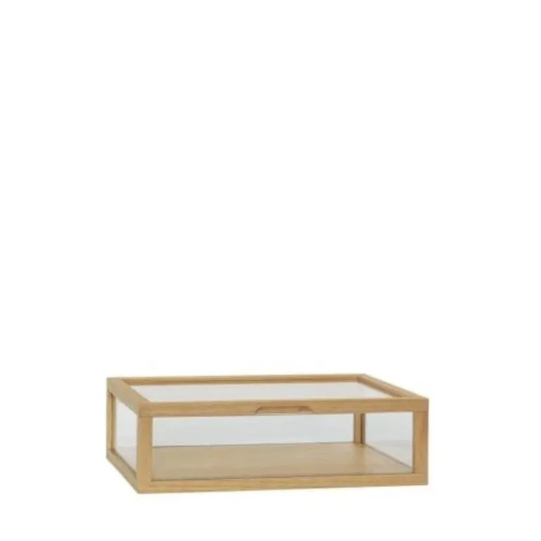 Prachtige displaybox van het interieurmerk Hubsch. De Hubsch View displaybox is gemaakt van mdf, glas, eikenhout en eikenfineer. Beschikbaar in twee formaten. Afmeting 40x30x12cm