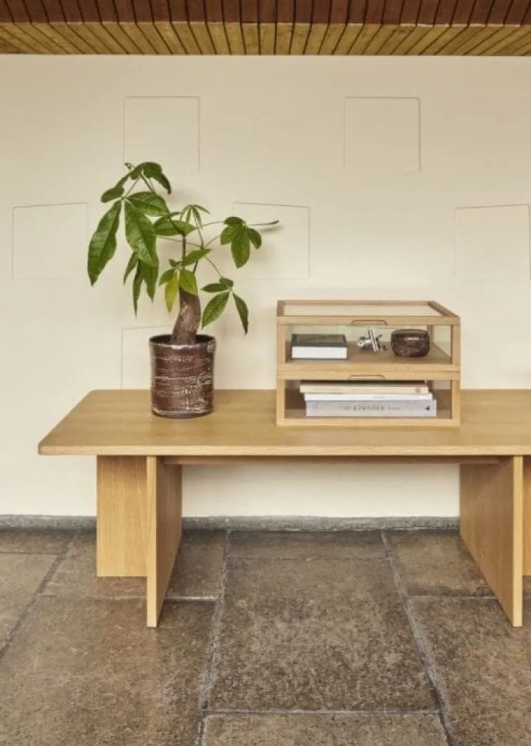 Materiaal: glas. mdf, eikenhout, eikenfineer