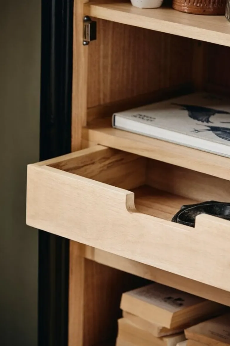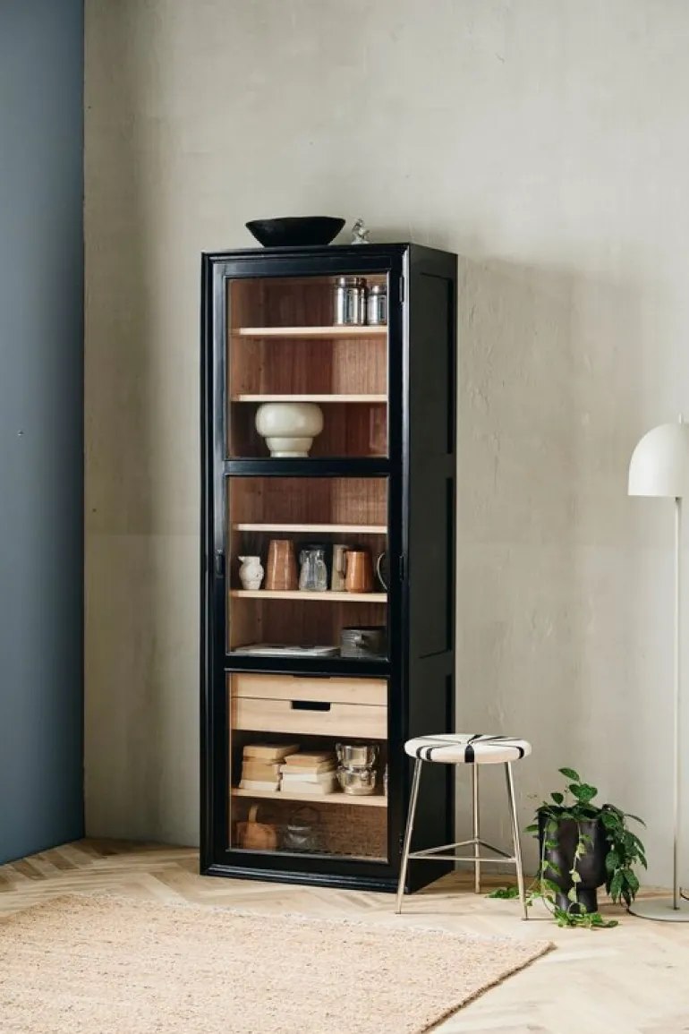 De Nordal Viva kast is beschikbaar in verschillende versies. Deze hoge versie is ideaal voor veel opbergruimte. Ideaal voor het opbergen van spullen maar ook om de mooiste accessoires in te displayen. Afmeting 210x76x44cm