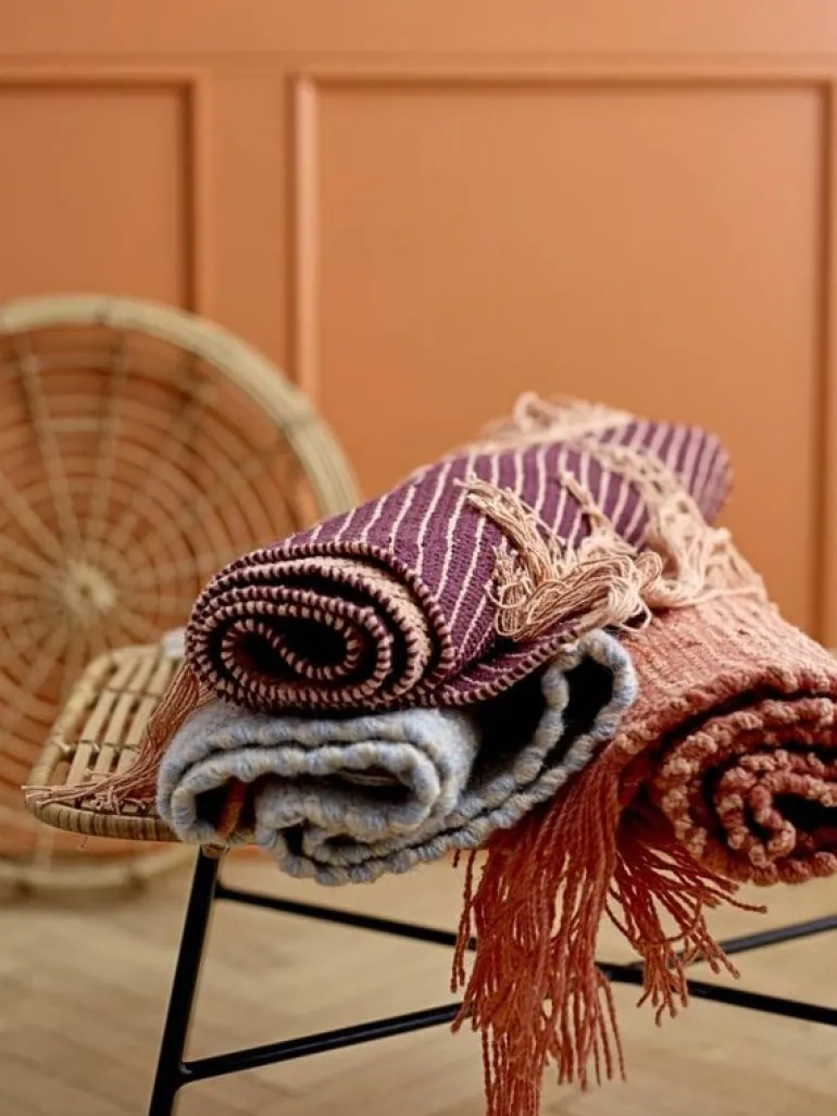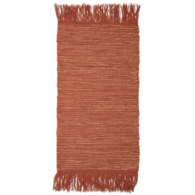 Mooi vloerkleed van het prachtige interieurmerk Bloomingville. Dit Bloomingville vloerkleed is gemaakt van oranje wol en heeft een lengte van 120 cm en breedte van 60 cm.