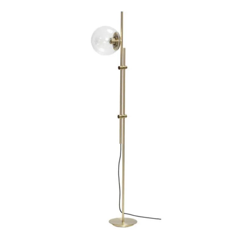 Moderne vloerlamp van het Deense interieurmerk Hübsch. Deze prachtige Hübsch vloerlamp is gemaakt van metaal in messing kleur. Wordt geleverd zonder lichtbron. De lamp heeft een E27 fitting en een afmeting van ø20xh181cm