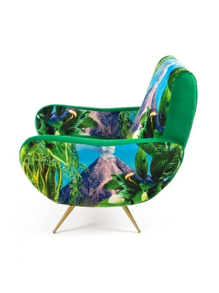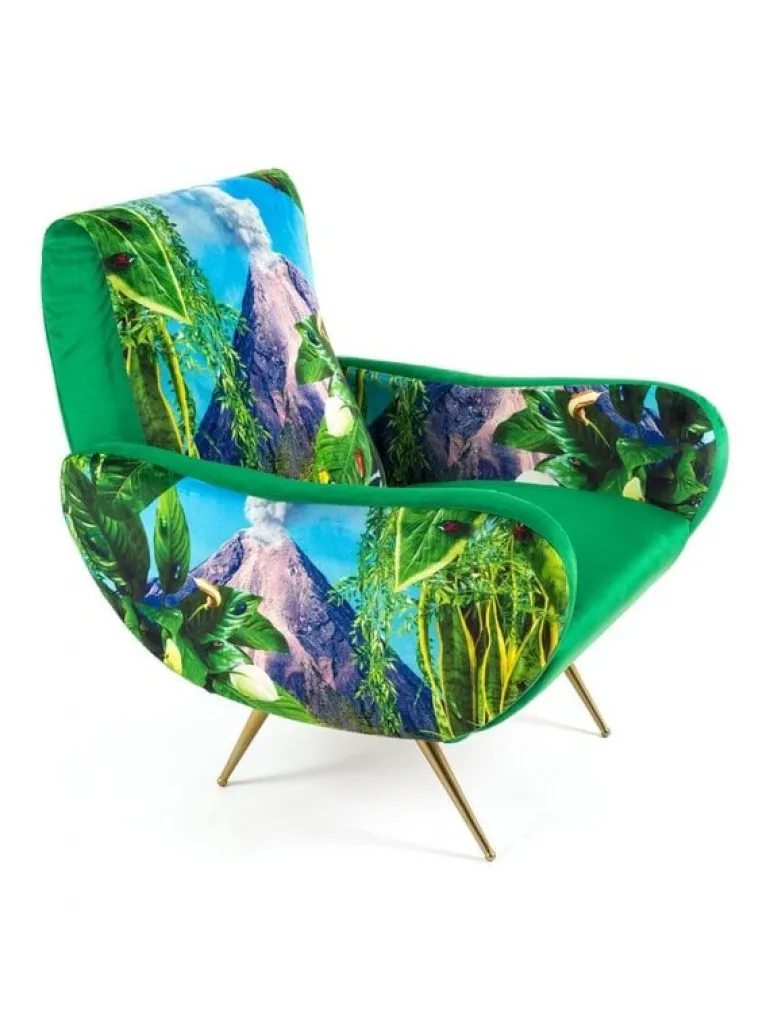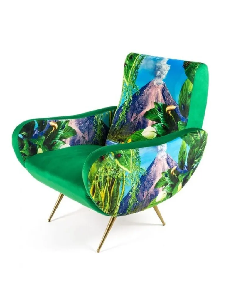 Seletti heeft zich met het ontwerp van de stoel laten inspireren door de jaren 50. Seletti zal altijd verrassen met de print. In meerdere prints en kleuren beschikbaar. De Seletti Volcano armstoel is een echte EYECATCHER! Afmeting 70 x 79 hoogte 86 cm.