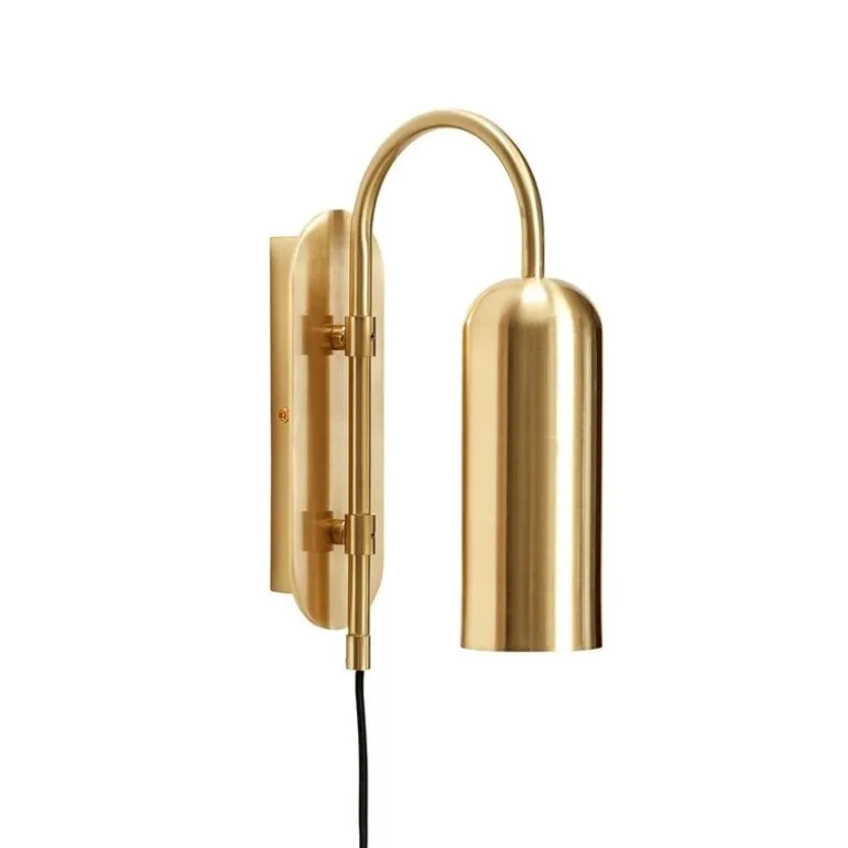 Moderne messing wandlamp van het Deense interieurmerk Hübsch. Deze prachtige Hübsch wandlamp is gemaakt van metaal. Wordt geleverd zonder lichtbron. De lamp is geschikt tot max 25W. Afmeting 19x7xh29cm