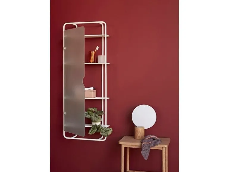 Mooi wandmeubel van het Deense interieur merk Hubsch. Heeft 4 planken en is af te sluiten met een glazen deur. Afmeting 41x16xh106cm
