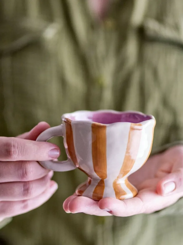 De Bloomingville Willa mokken worden geleverd in een set van 6 stuks. Het zijn kleine kopjes met een golvende rand. De witte en bruine strepen zijn met de hand beschilderd. Afmeting Ø9×7,5cm