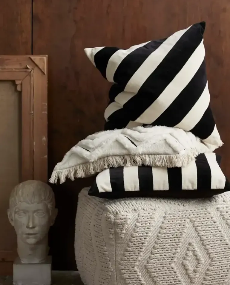 Prachtige katoenen poef van Nordal. De Nordal Wular is handgemaakt en daardoor is elke poef uniek. Gebruik om extra sfeer te creëren en als extra zit plek! Afmeting 50x50x38cm