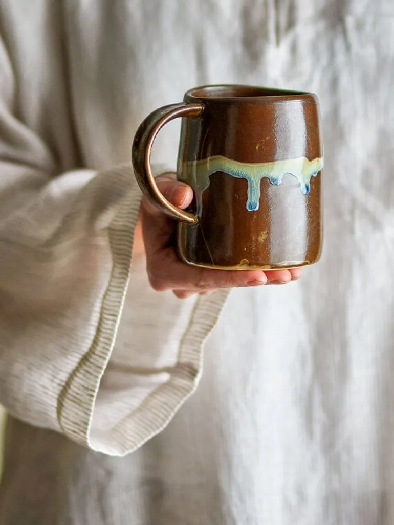 De Bloomingville Yori mokken worden geleverd in een set van 6 stuks. De mokken hebben een mooie kleur overloop in een bruine kleur, gecombineerd met natuurlijke kleuren. Afmeting Ø8x11cm