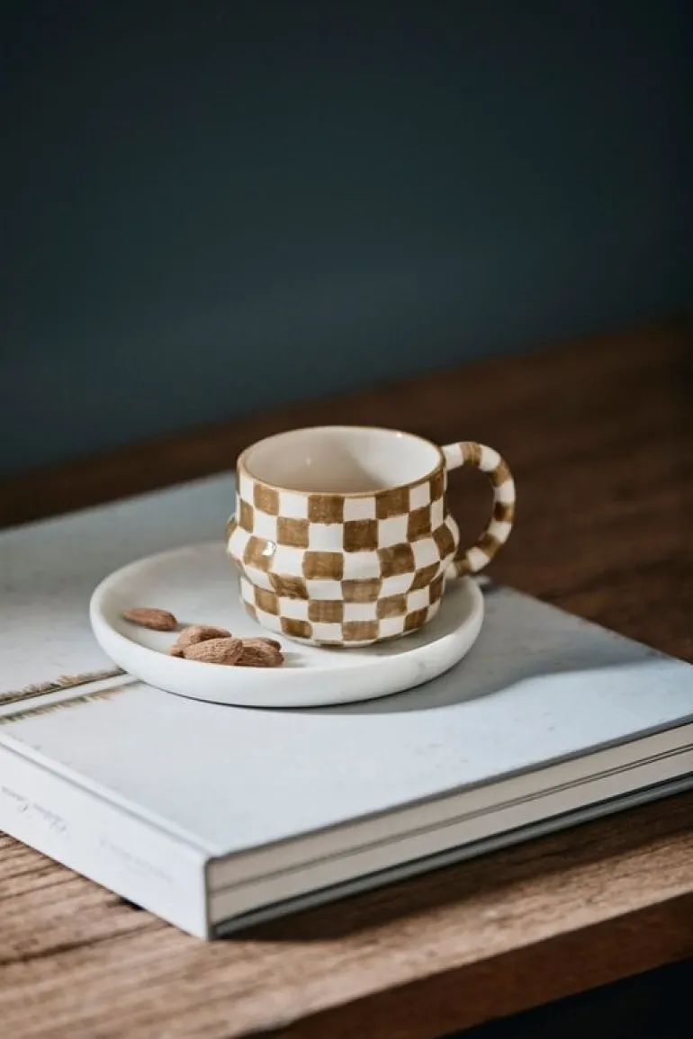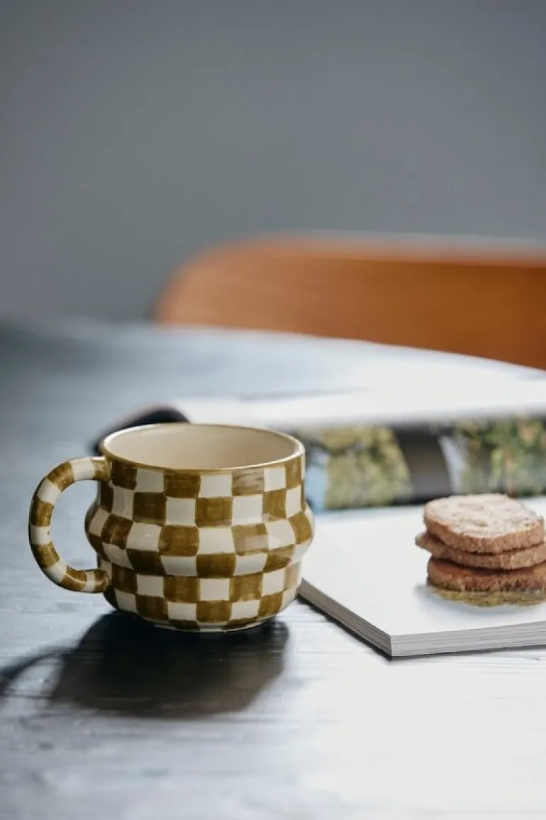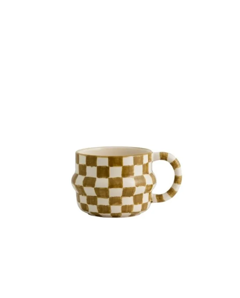 De Nordal Ysia mokken hebben een geruit patroon. Wordt geleverd in een set van 4 stuks. Beschikbaar in verschillende kleuren. Afmeting Ø7,5×7,5cm