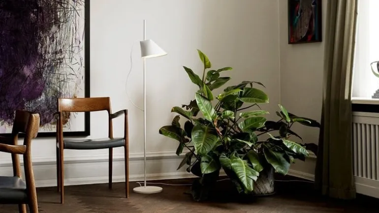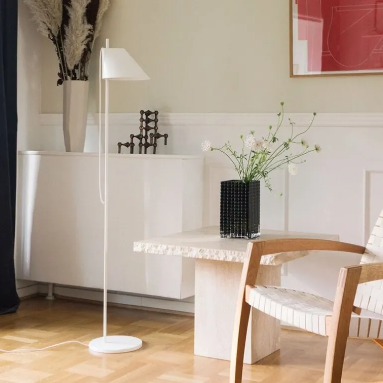 De Louis Poulsen Yuh staande lamp heeft geometrische vormen en een minimalistisch design. De lamp is ontworpen door het Deens-Italiaanse duo GamFratesi in 2017. Beschikbaar in meerdere uitvoeringen en kleuren. Afmeting 24x140x24cm