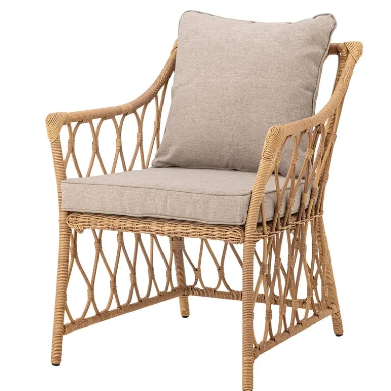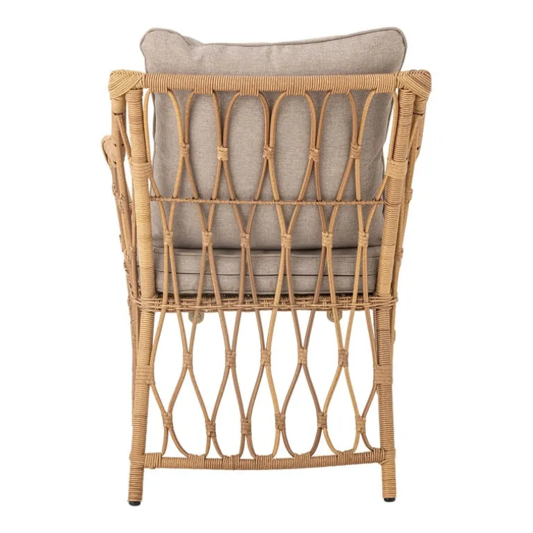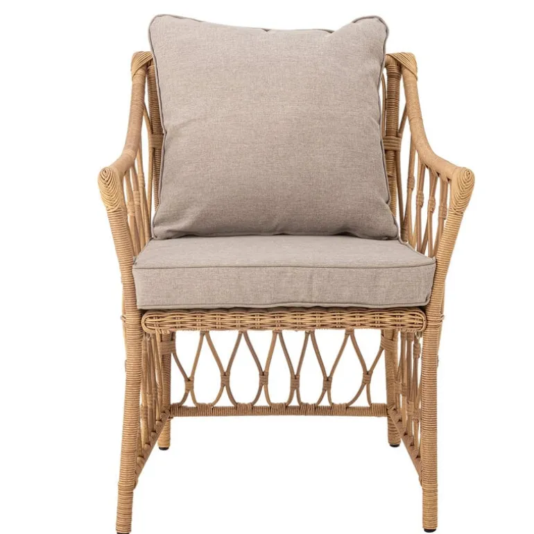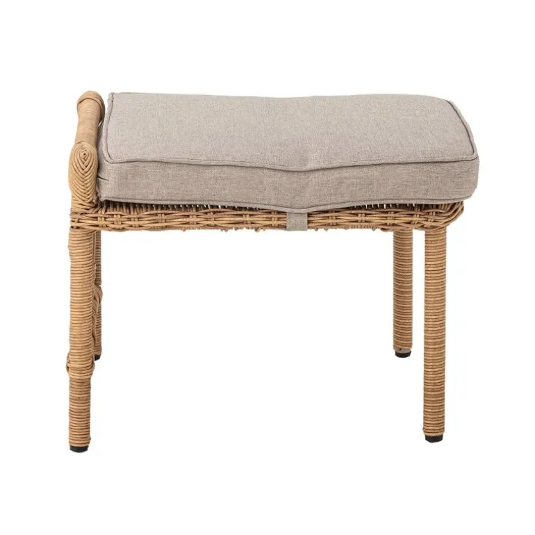 De Bloomingville Belluce loungestoel met voetenbankje heeft een geweven polyrotan design en is voorzien van kussens van polyester met een charmante linnenlook. Wij adviseren om tuinmeubilair in een overdekte ruimte te plaatsen. Afmeting 66x82x72cm