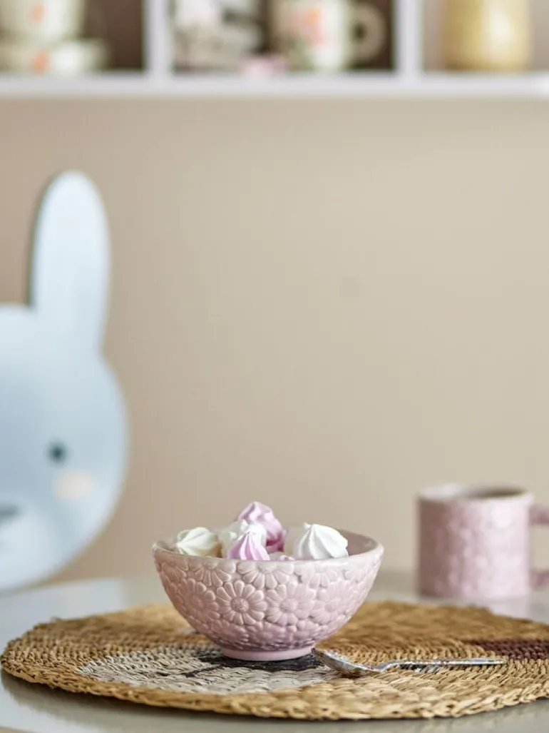 De Bloomingville Mini Benji schaaltjes worden geleverd in een set van 6 stuks. De schaaltjes hebben een zoet en roze gekleurd ontwerp met een patroon van madeliefjes in reliëf. Afmeting Ø14x6cm