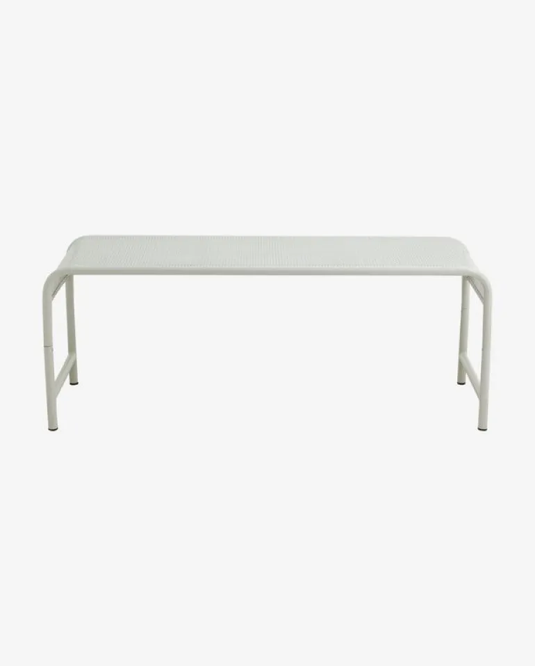 Het Nordal Brenta bankje met een glanzend oppervlak. De bank heeft strakke lijnen die een puur, minimalistisch tintje aan je interieur toevoegen. Gebruik de bank zowel binnen als buiten. Afmeting 122x42x46cm