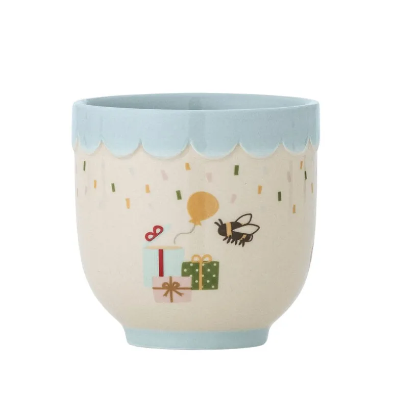 De Bloomingville Mini Celebrate mokken zijn gemaakt van aardewerk en versierd met feestelijke illustraties in zachte tinten. De blauwe binnenkant geeft gezellige touch aan tafel. Afmeting 7,5×7,5cm