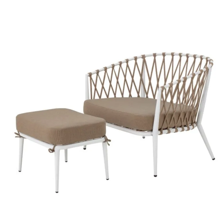Prachtige loungestoel met kussens van Bloomingville. De Bloomingville Cia loungestoel is speciaal ontworpen voor buiten gebruik. Het frame is gemaakt van metaal, de zitting van polyester. Afmeting L78xH80xW72 cm