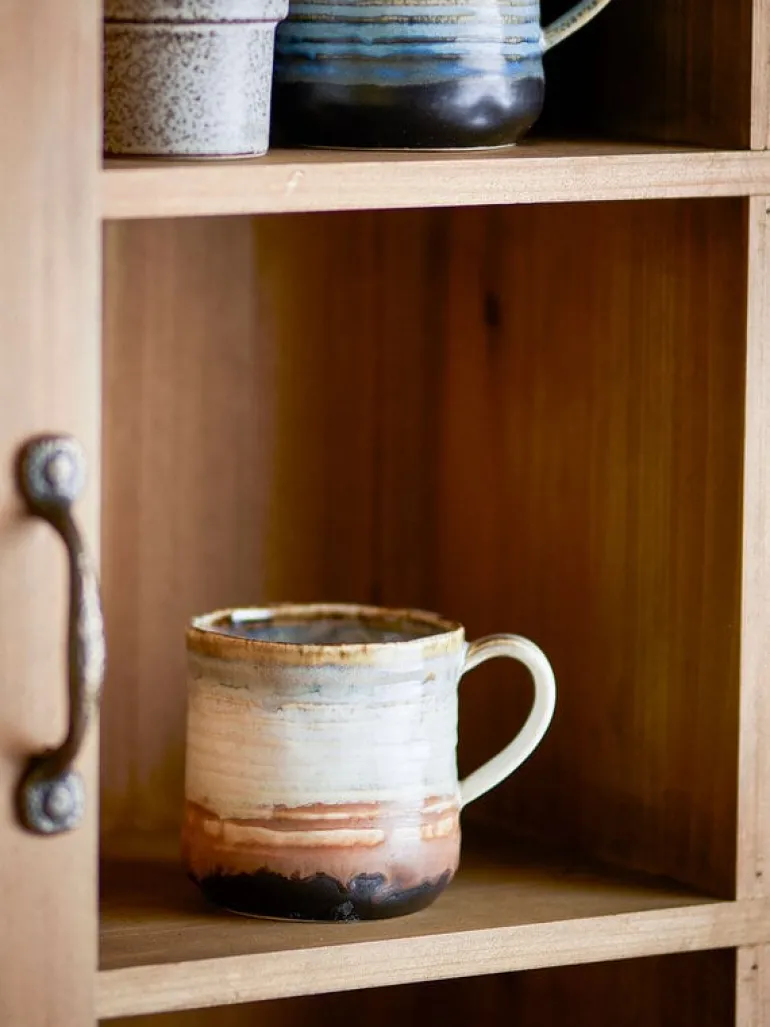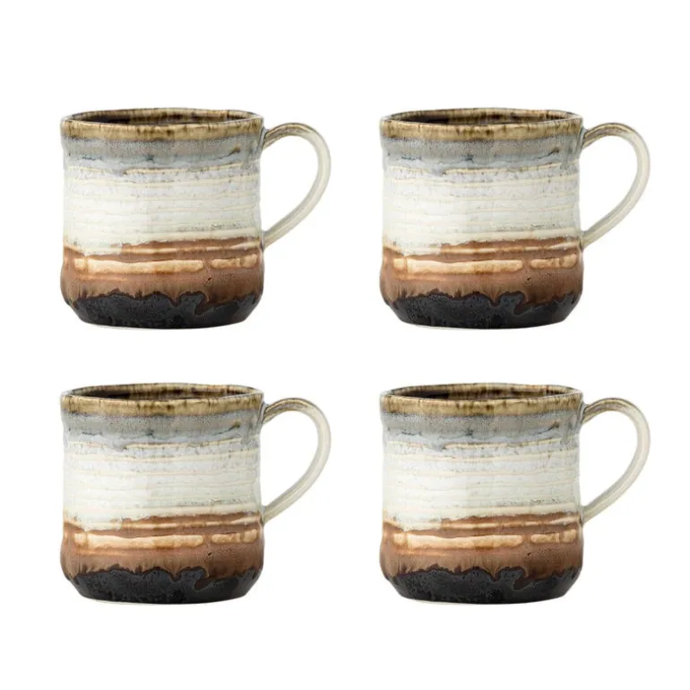 De Bloomingville Deana mokken zijn een set van 4 mokken. Gemaakt van aardewerk in bruin- en goudentinten. Het glazuur vormt fijne verticale strepen en creëert een wisselend kleurenspel. Afmeting Ø8,5x9cm