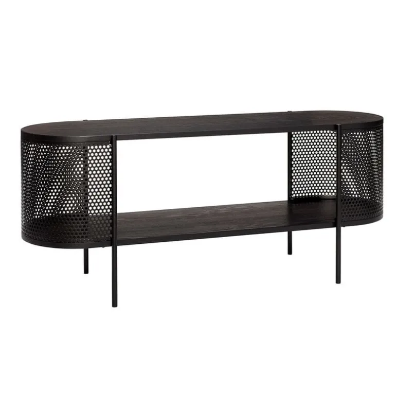 Deze mooie zwarte Hübsch dressoir is gemaakt van metaal met hout. Prachtig design van het Deense interieurmerk Hubsch. Ook te gebruiken als televisie meubel. Afmeting 120x35xh50cm