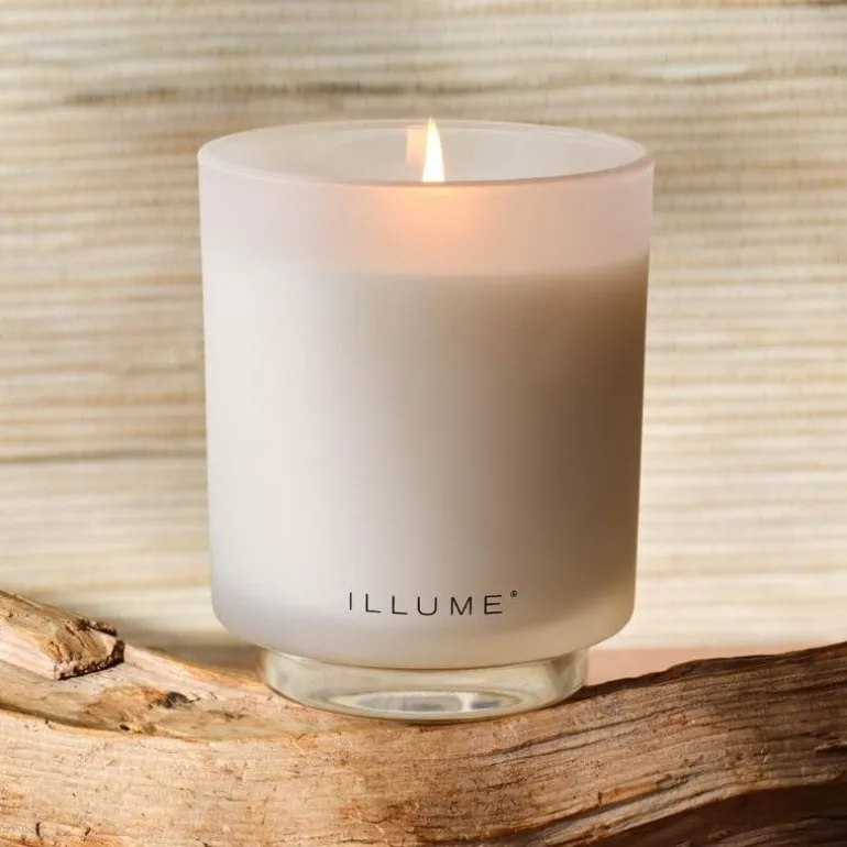 De Illume Driftwood box kaars met de geur van citroenbloesem gekust door oceaanmist. Vegan, dierproefvrij, plantaardig. Brandduur is tot 50 uur. Afmeting Ø9×10,7cm