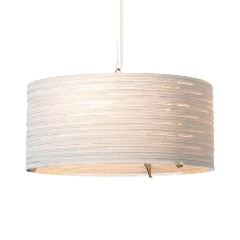 Prachtige lamp van Graypants. De Graypants Scraplights zijn handgemaakt van karton. Beschikbaar in verschillende uitvoeringen, afmetingen en kleuren. De Graypants Drum 18 hanglamp heeft een afmeting van Ø45x21cm.