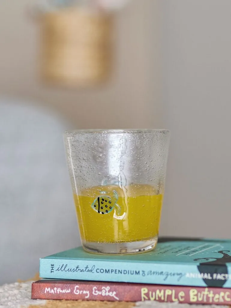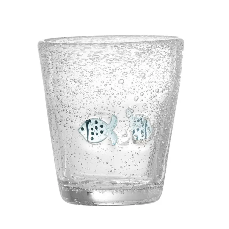 De Bloomingville Mini Finney glazen zijn gemaakt van mondgeblazen glas en versierd met kleine blauwe visjes. Wordt geleverd in een set van 6 stuks. Afmeting Ø9x10cm