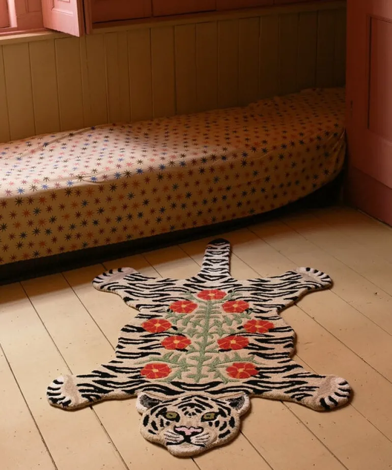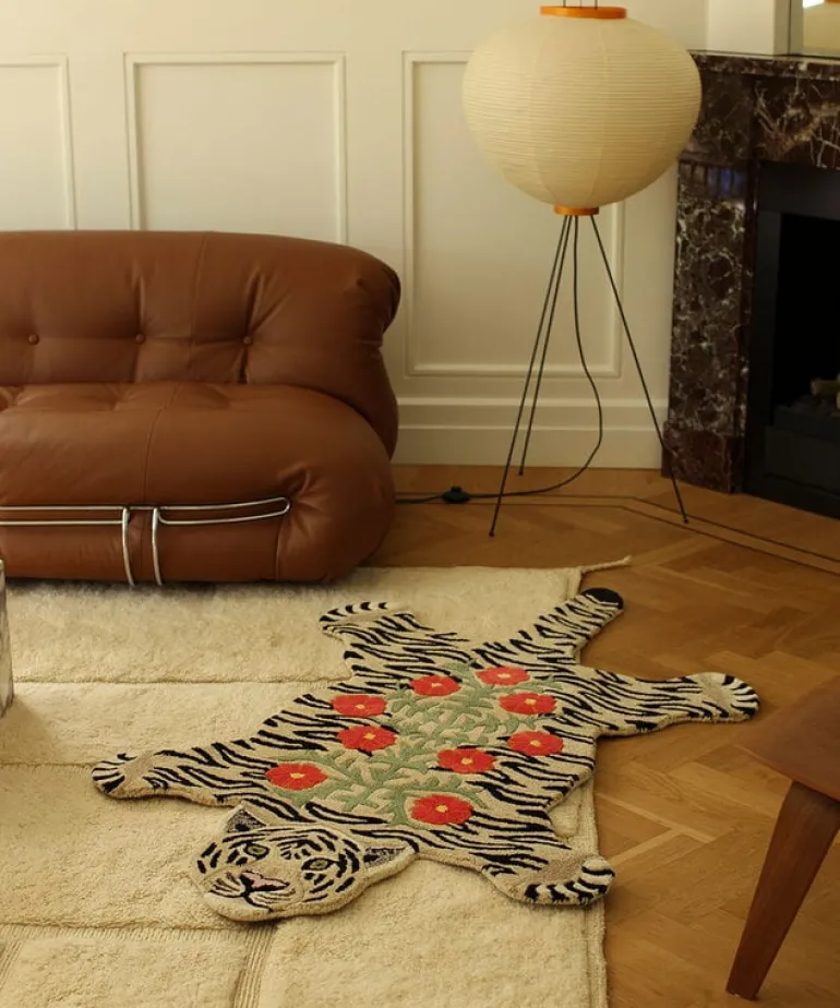 De Tapis Amis vloerkleden van Doing Goods zijn razend populair en wij begrijpen waarom! Het Doing Goods Floral white tiger vloerkleed L is prachtig en wordt met veel liefde handgemaakt in India van wol. Afmeting 155x93x2cm