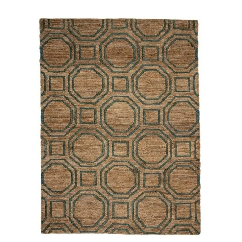 Creëer sfeer in huis met de mooie en gezellige vloerkleden van Bloomingville. Het Bloomingville Fry vloerkleed is gemaakt van jute en heeft een afmeting van 210x150cm. Het kleed heeft een naturel kleur en een groene print.