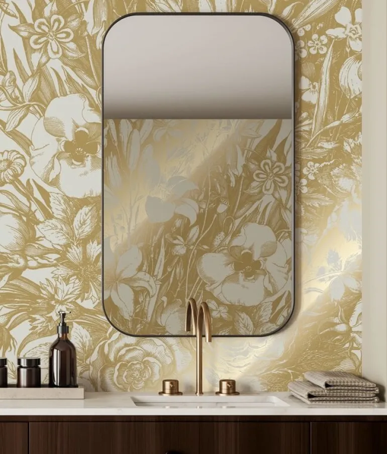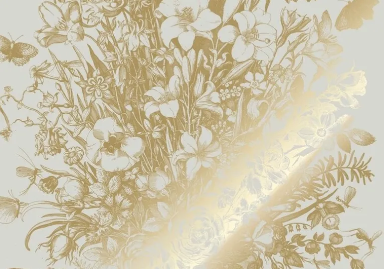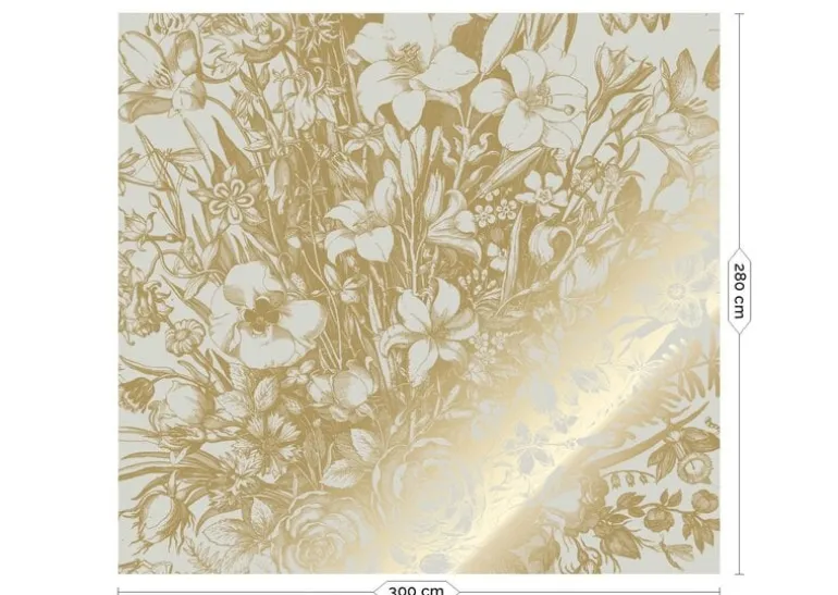 Prachtig bloemen behang van KEK Amsterdam. Het KEK Amsterdam Goud Engraved bloemen behang zand heeft een zijdeglans uitstraling. Het behang heeft een afmeting van 300x280cm (6 banen). Beschikbaar in verschillende afmetingen en kleuren.