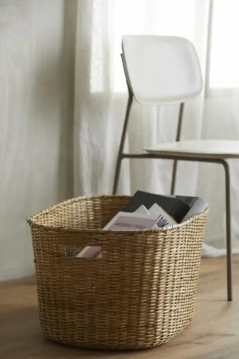 Mooie opbergmand van het Deense interieurmerk Nordal gemaakt van wicker. Hoogte 31cm, breedte 40cm en lengte 62cm. De Nordal Koloa opbergmand kan gebruikt worden om spullen op te bergen maar ook als wasmand.