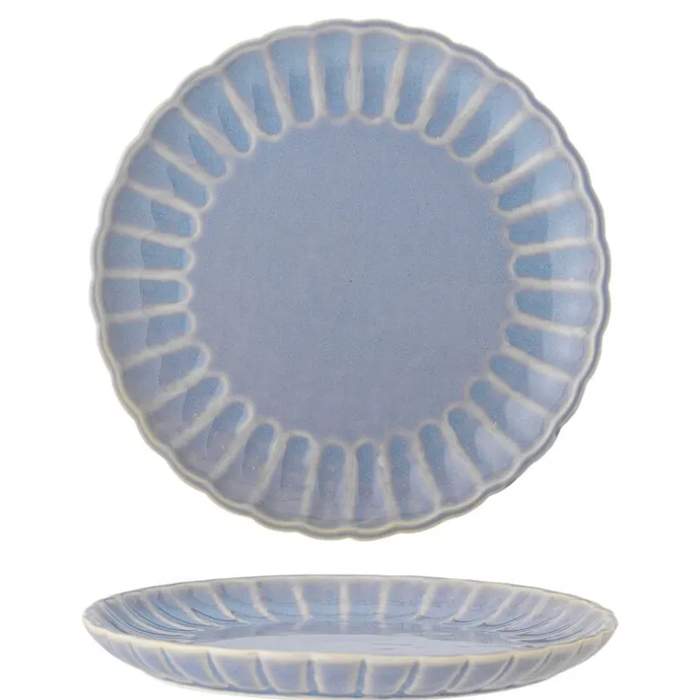 De Bloomingville Latina borden zijn gemaakt van aardewerk en worden geleverd in een set van 6 stuks. De golvende randen voegen zowel textuur als een elegante touch toe aan het ontwerp. Afmeting Ø27x2cm
