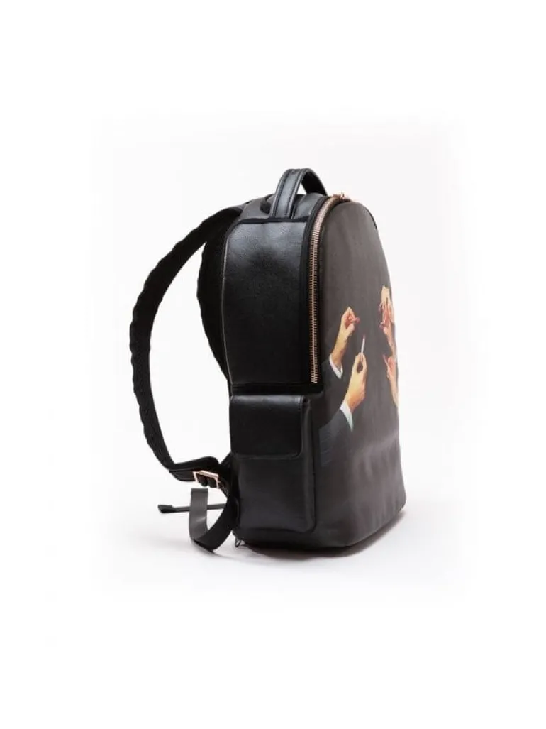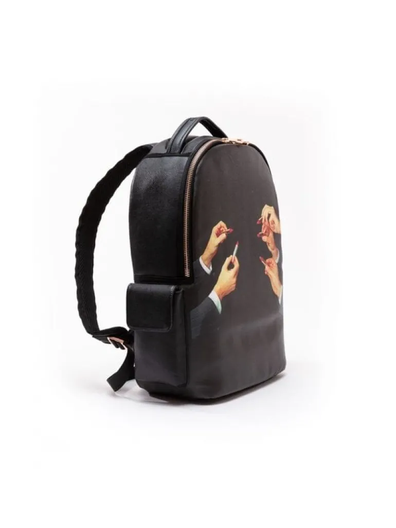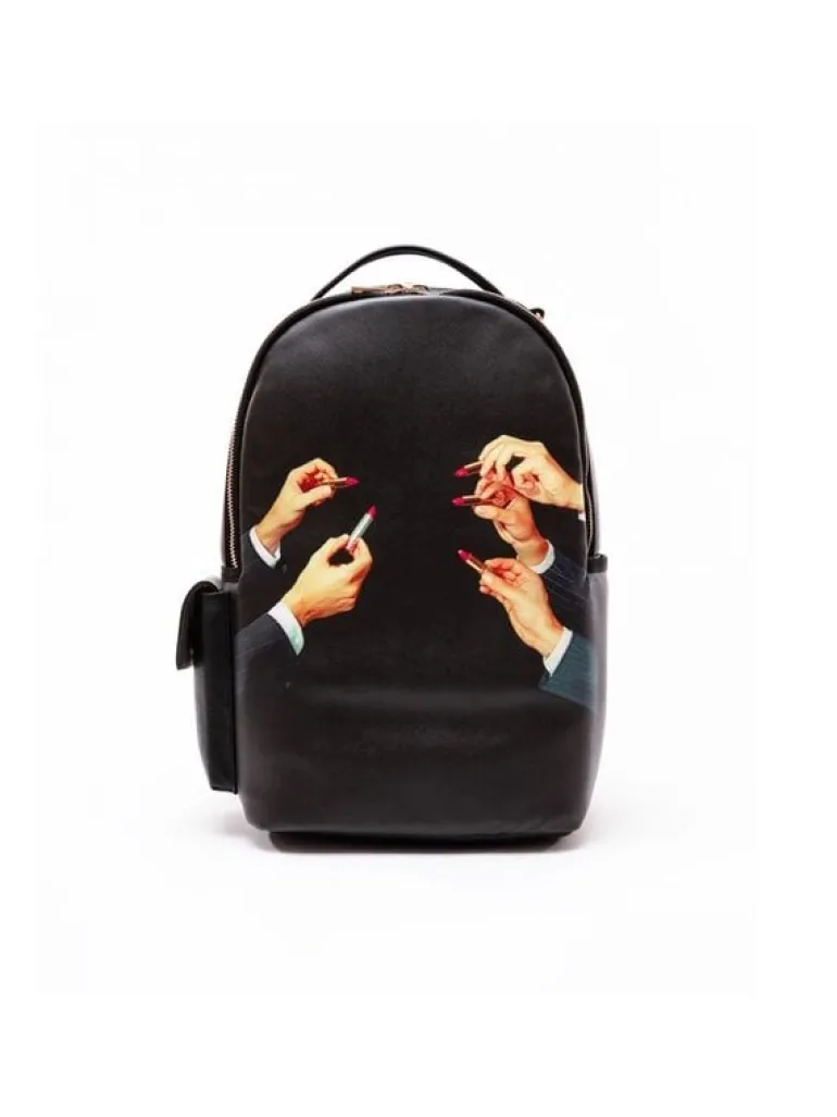 Leuke rugzak van het Italiaanse interieurmerk Seletti. De Seletti Lipstick rugtas is gemaakt van pvc en polyester. Beschikbaar met verschillende prints. Afmeting 33×18,5cm, hoogte 43cm.