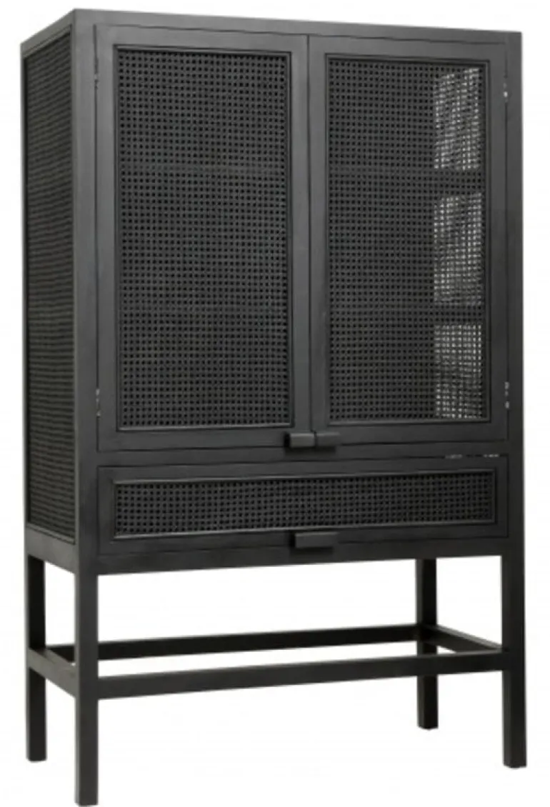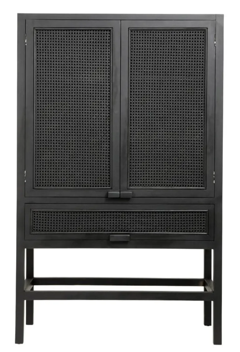 Mooie houten kast van het prachtige interieurmerk Nordal. Deze Nordal kast is gemaakt van teakhout met webbing. De kast is 100 cm breed, 50 cm diep en 160 cm hoog. Voorzien van twee deuren en planken.
