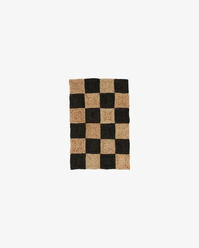 Het Nordal Nanea vloerkleed met een patroon in zwarte en natuurlijke kleuren. Met zijn klassieke, geruite patroon past dit tapijt zowel in moderne als in meer traditionele woningen. Afmeting 90x60cm