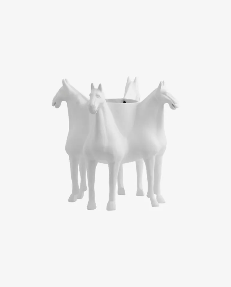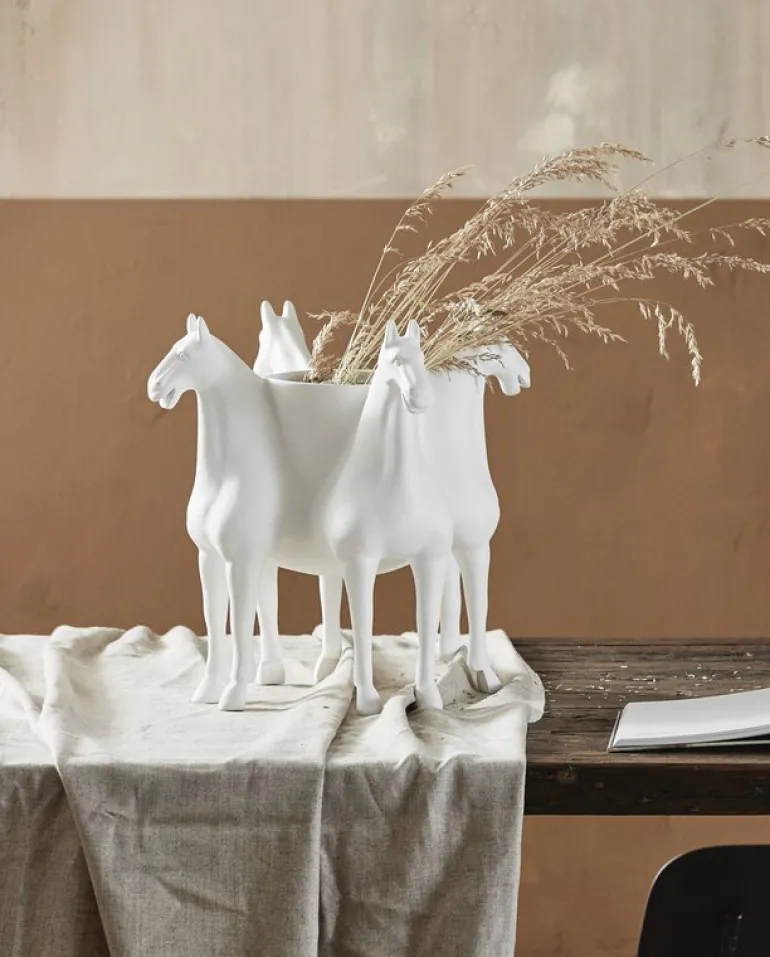 De Nordal Roxa vaas met een artistiek ontwerp. Een vaas die niet alleen een vaas is, maar ook een decoratief middelpunt. De volumineuze vaas bestaande uit vier paarden samengevoegd tot één groot beeld. Afmeting 42x40cm