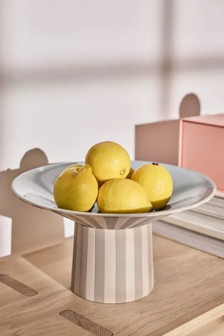 De OYOY Toppu centerpiece schaal is een handbeschilderd, sculpturaal stuk dat een opvallende indruk maakt op elke tafel. Met zijn levendige strepen voegt hij een speelse touch toe aan elke ruimte. Afmeting 30x30x17cm