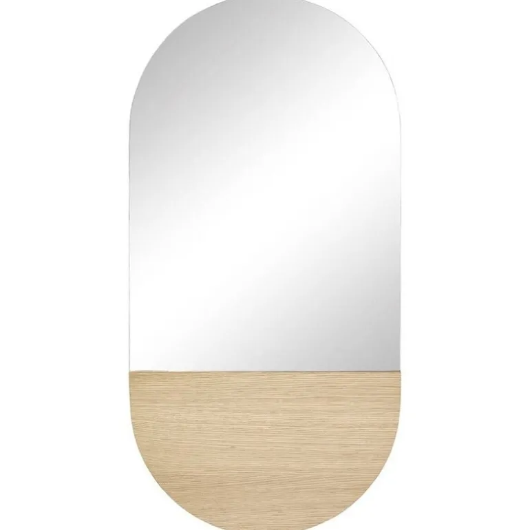 Moderne spiegel van het Deense interieurmerk Hübsch. Deze prachtige Hübsch wandspiegel is gemaakt van eikenhout en MDF. De spiegel heeft een hoogte van 100cm en is 50cm breed.