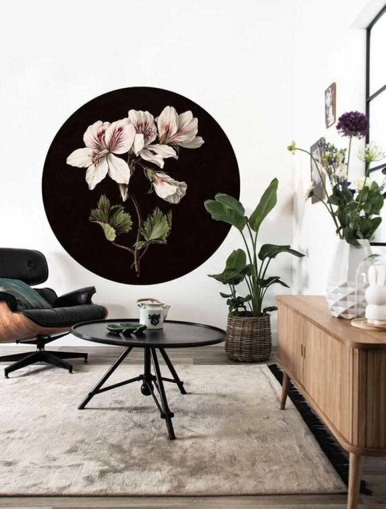 Prachtig hoogwaardig vliesbehang van KEK Amsterdam. De KEK Amsterdam Witte bloemen behangcirkel heeft geen coating waardoor het behang een super matte uitstraling heeft. Beschikbaar in verschillende afmetingen. Afmeting ø142,5cm (3 banen)